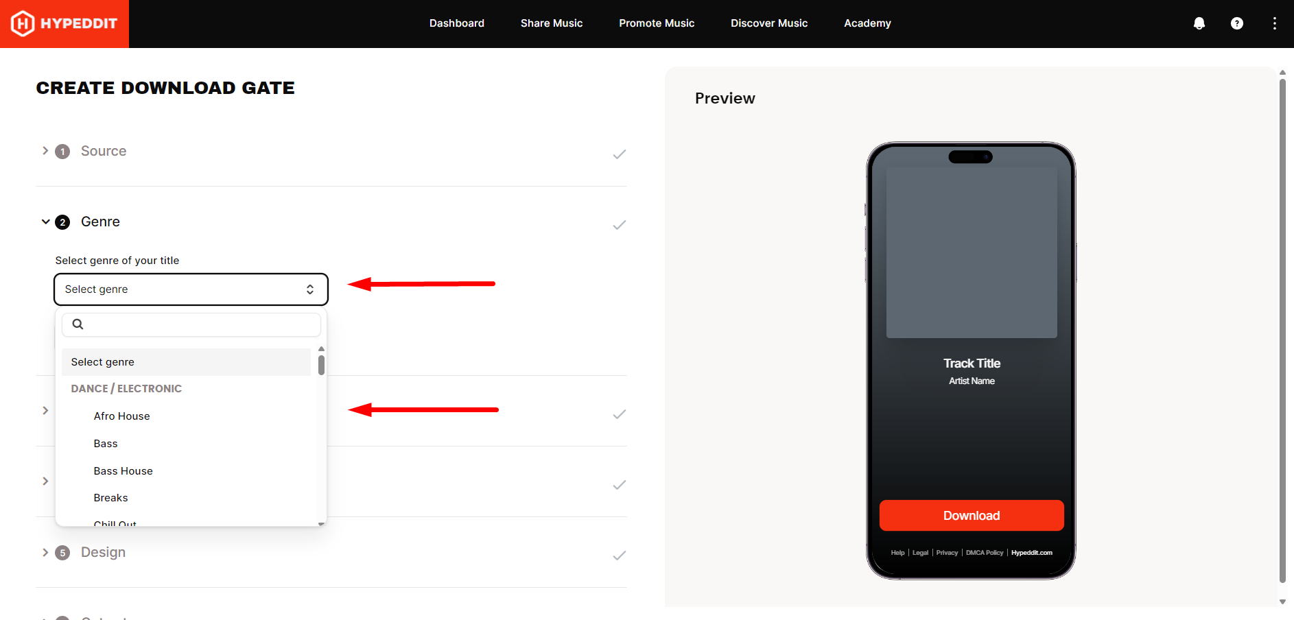 Step 3. Select the genre of your track. You can search for it in the search box or browse through the list below.
