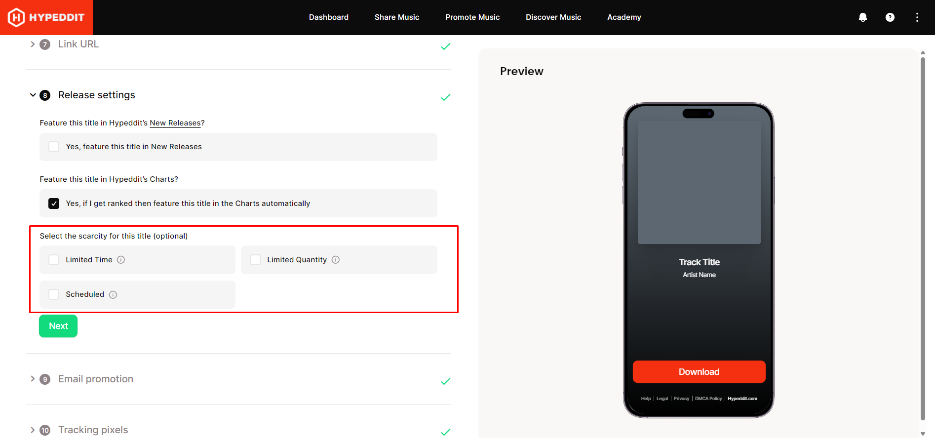 - Step 9. You can then set how your Download Gate will be available to fans. By default, your Download Gate will be instantly public and offer your fans to download your song at any time.