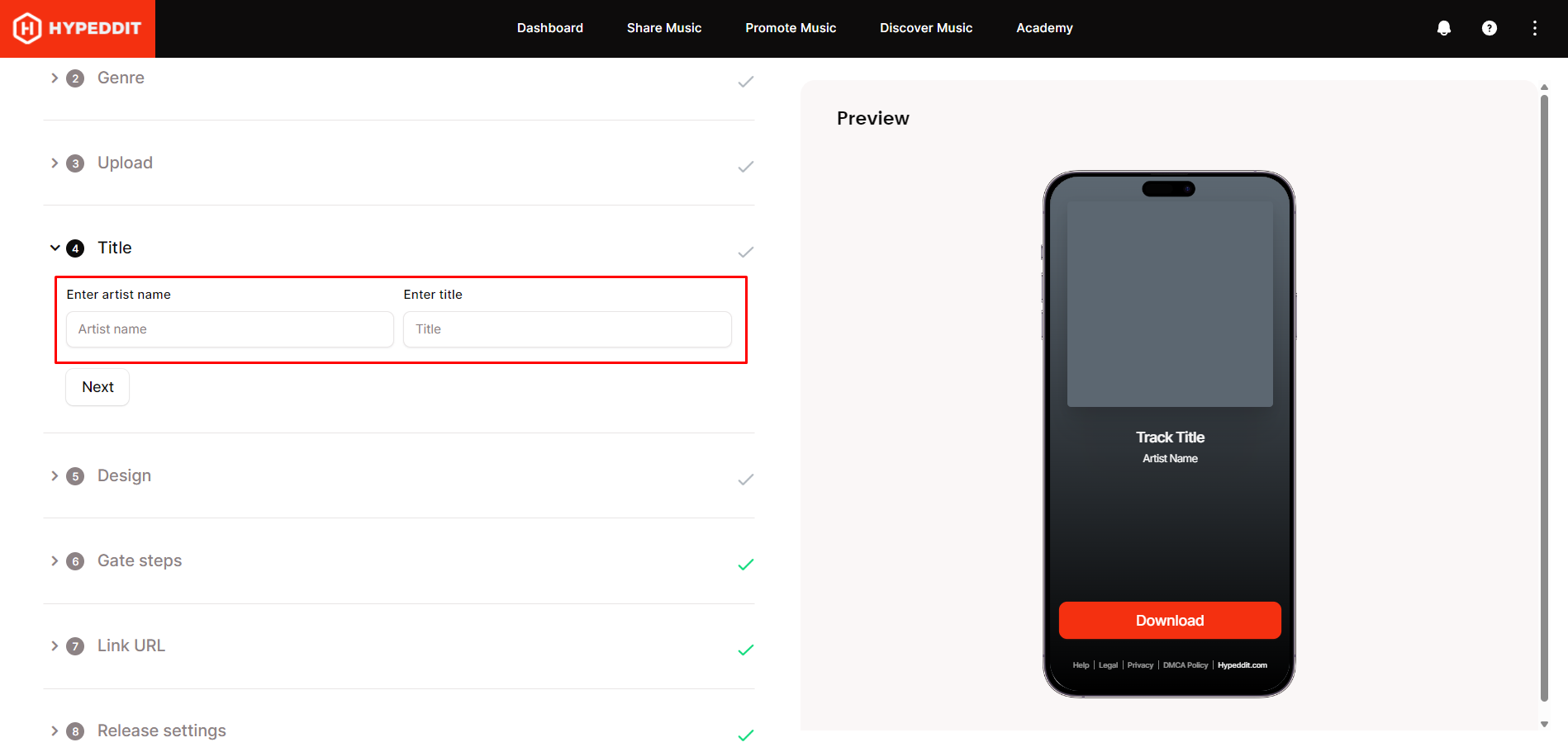Step 5. Enter your "Artist Name" and track "Title" - or check that the information that was automatically populated for you is correct.